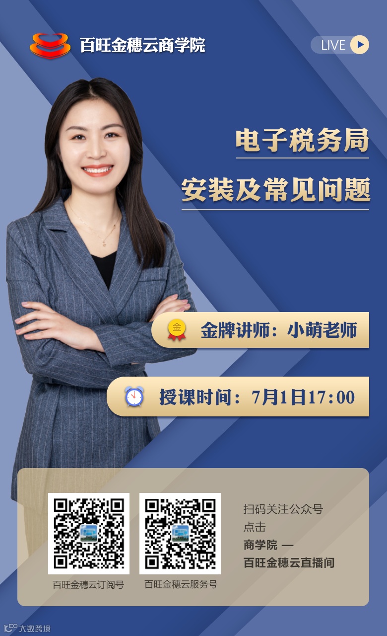 百旺金穗云直播间,7月1日下午五点,小萌老师和您一起学习电子税务局软件安装流程及常见问题!