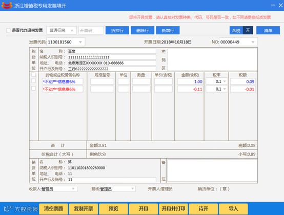 初次使用使用开票软件或者更换电脑需要调整打印格式。打印设置调整您可在发票填开点击打印后在打印预览界面进行调整发票边距值,具体操作步骤如下: