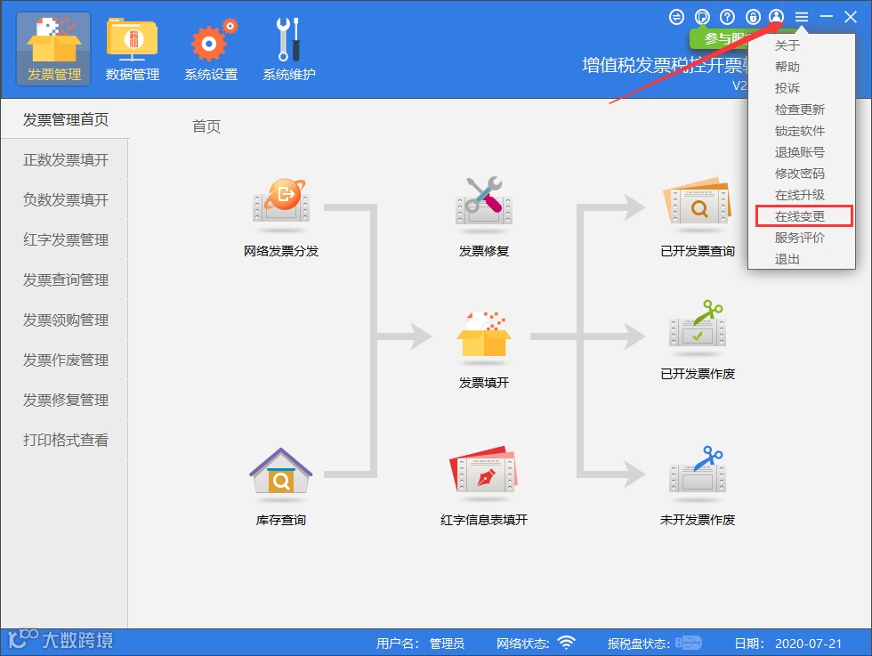 首先,必须是当月开具且未抄报的发票,其次开具人与作废人必须是同一人,管理员可以作废所有人开具的发票。