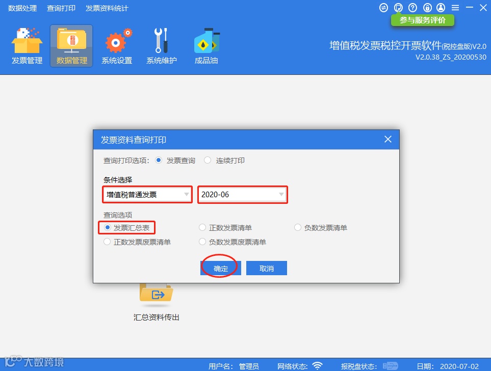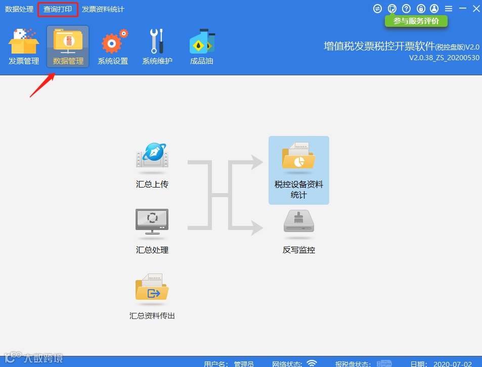点击【数据管理】-【查询打印】。