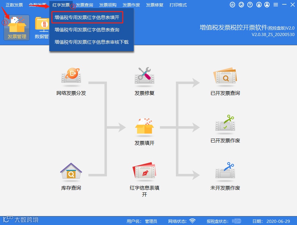 ①红字信息表填开