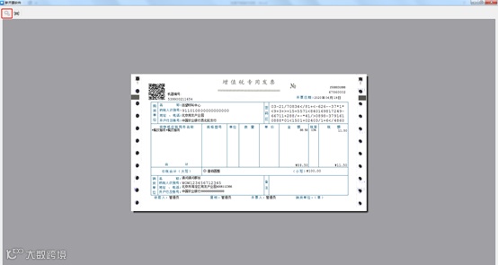 点击左上角,测试打印。打印完毕后用空白发票对齐左上角查看内容是否再对应格子内。否则重新调试打印参数直至每一项都在发票内。