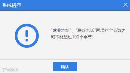 联系电话 :根据企业情况进行填写。(营业地址与联系电话两项的字节数之和不能超过100个字节)。