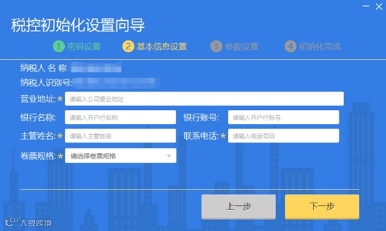 正确输入企业基本信息后,点击【下一步】,进入参数设置窗口。