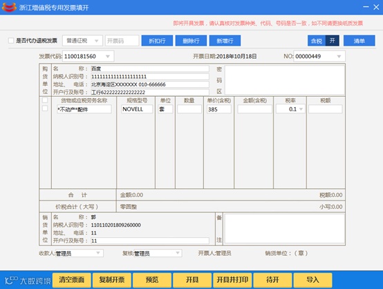 税号可以为15位-20位的数字或字母;地址电话与银行账号均可打印100个字符。