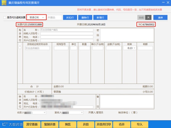 1、正数发票填开