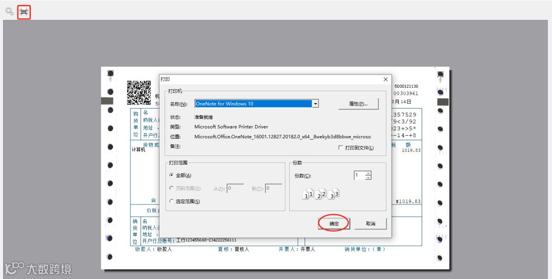出现发票汇总表,点击【打印】按钮。