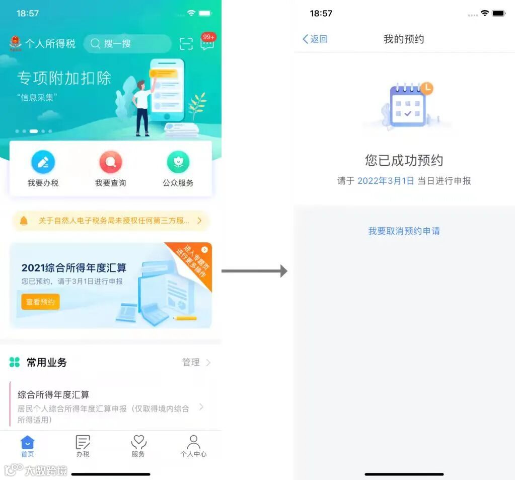 2022年2月16日至3月15日,个税APP将开放“2021综合所得年度汇算申报预约”功能。