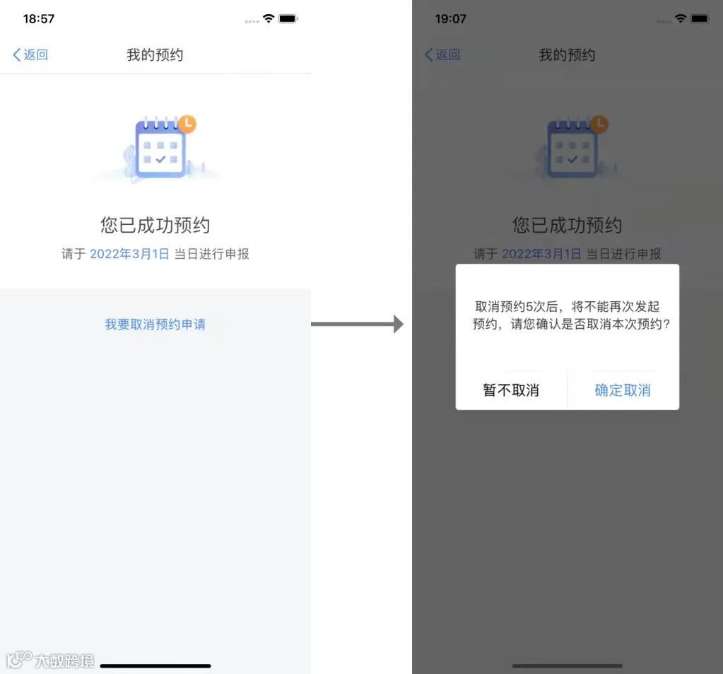 在所选的日期之前,您也可以通过该页面上的“我要取消预约申请”按钮取消您的预约。取消成功后,可重新发起预约。