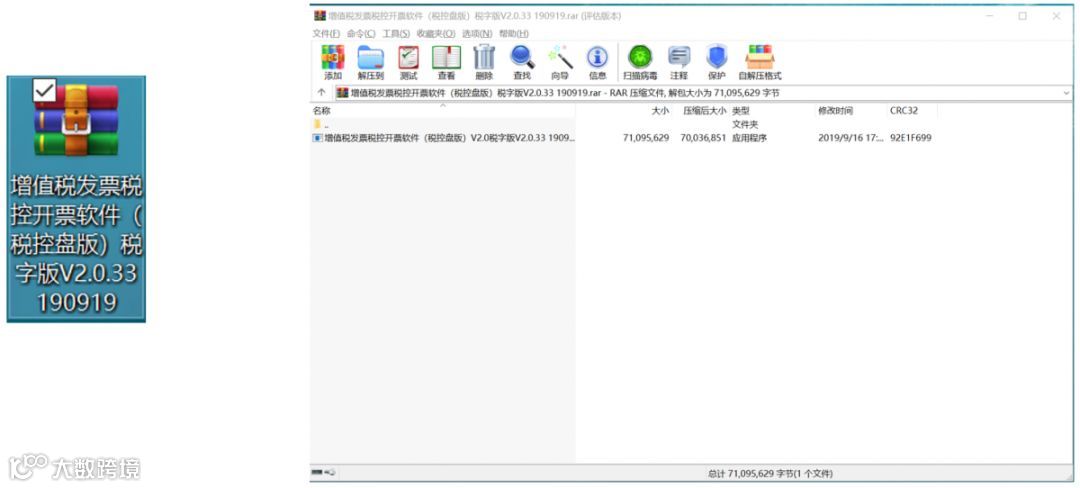 6、打开下载好的压缩包文件,双击【增值税发票税控开票软件(税控盘版)V2.0税字版V2.0.33 190919.EXE】应用程序,安装开票软件。