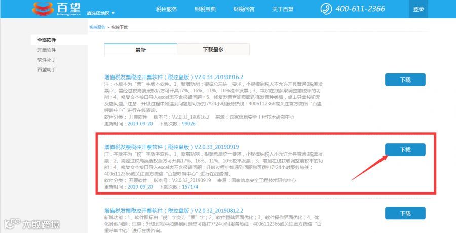 1.软件下载的网址:www.sh.baiwang.com.cn,目前软件最新版本是V2.0.33 190919。