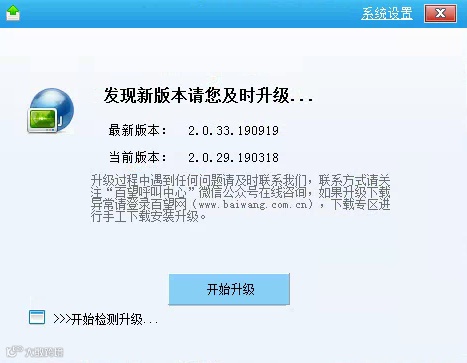 1、打开开票软件后会提示:“发现新版本请您及时升级…”,点击下方的【开始升级】。