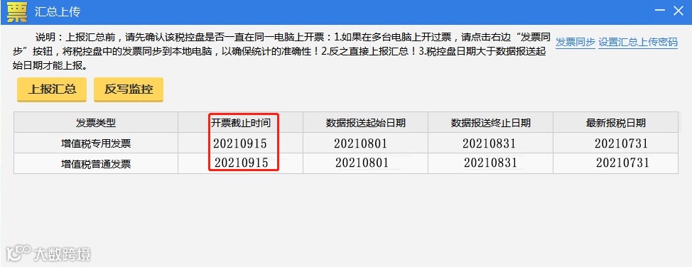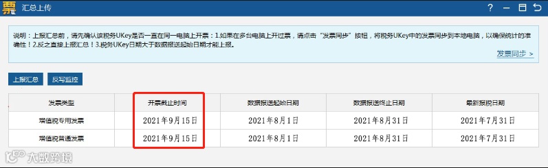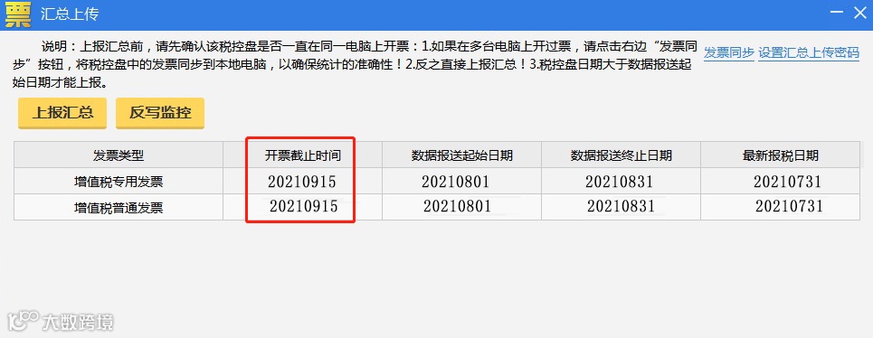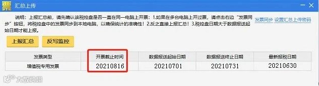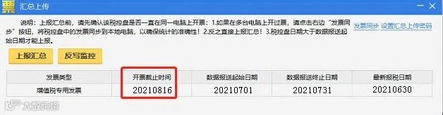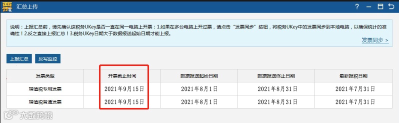 操作流程:重新打开汇总上传界面,查看各发票类型开票截止时间是否更新到下月中旬,若更新,说明操作成功。