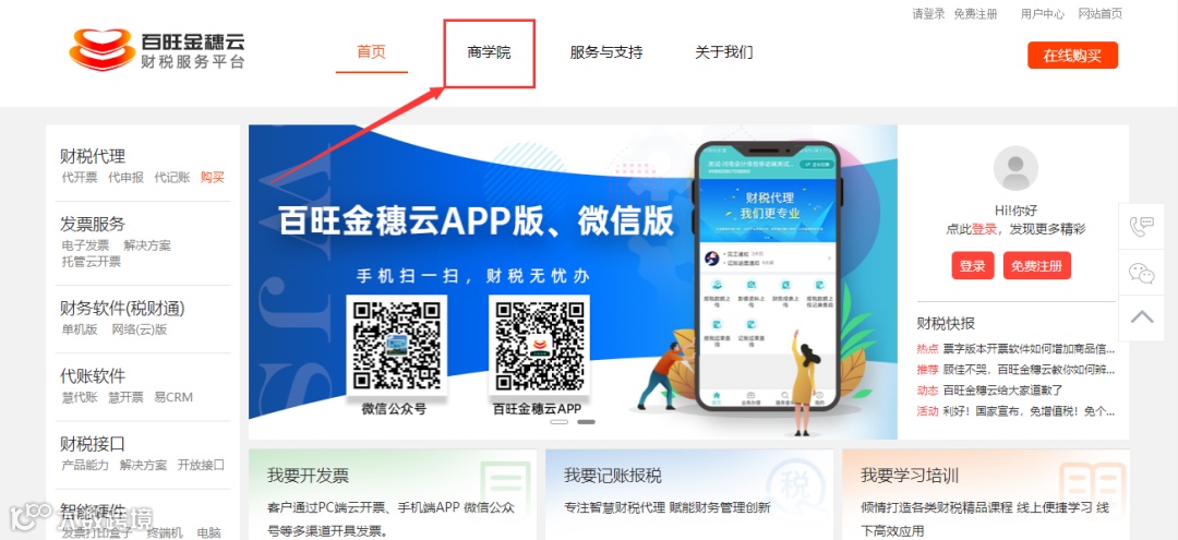 第一步:打开百旺金穗云官网(http://www.baiwangjs.com)