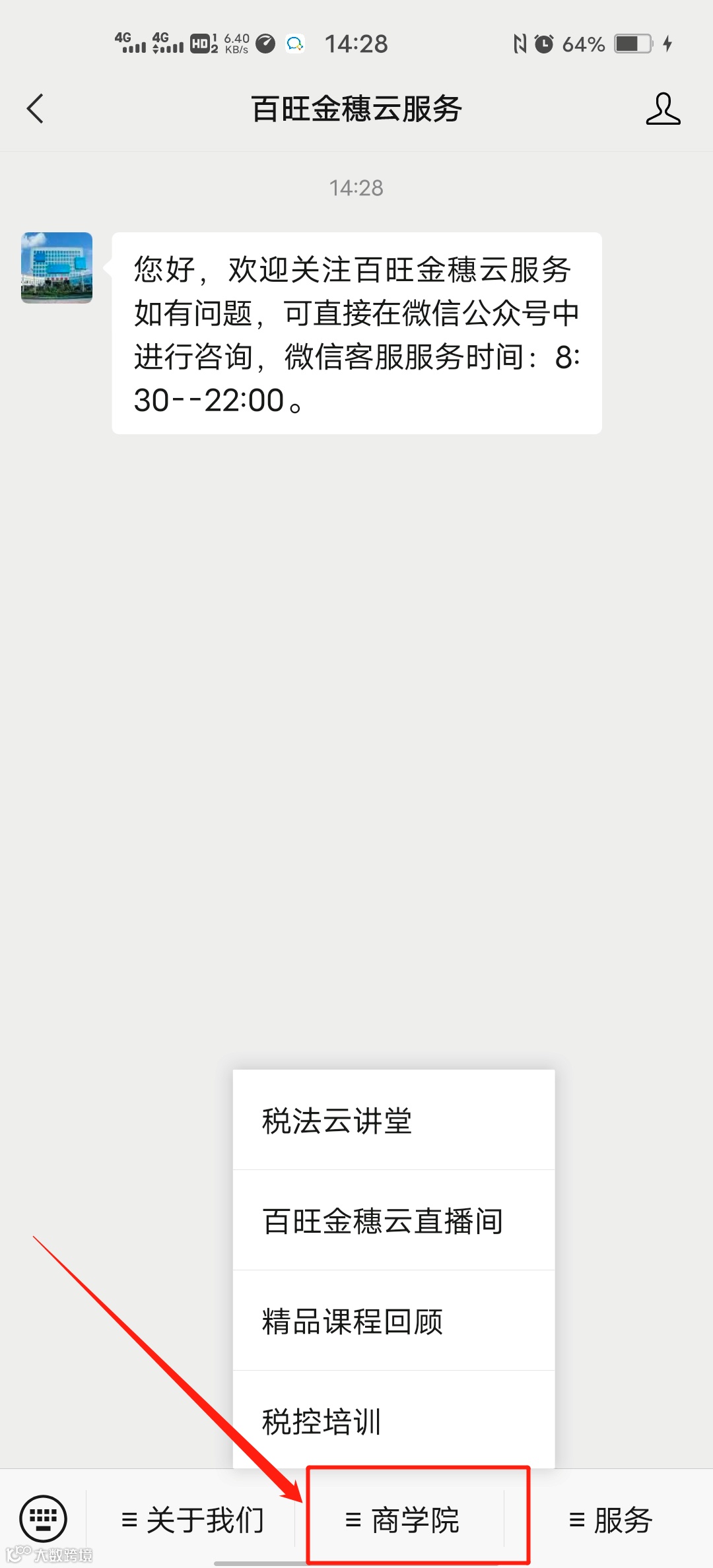 第一步:关注百旺金穗云服务(bwjsyfw)微信公众号