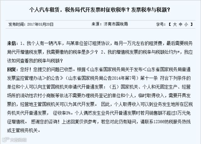 你好,老师!新年快乐!有个问题请教下。今天看到一则关于“私车公用”的涉税问题处理,其中说到,“私车所有人甲某,与企业签署车辆租赁协议,月租金4000元,双方到税务机关代开发票。月4000元的租金开代发票是享受增值税减免,因此甲某只需按照“财产租赁所得”计征个人所得税: (4000-800)*20%=640元。”关于:月4000元的租金开代发票是享受增值税减免这个政策咨询了12366,得到的答复是没有相关政策。请问这条信息是否有误?若有这个政策是否能麻烦老师将相关政策和文件号告诉我,非常感谢!