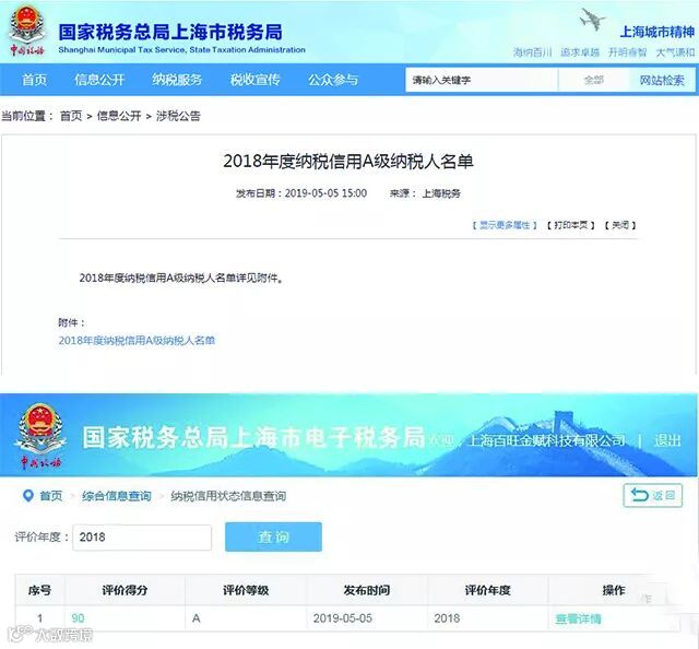 近日,在上海市税务局开展的年度纳税信用等级评定工作中,上海百旺金赋科技有限公司被评定为“2018年度纳税信用A级”企业。