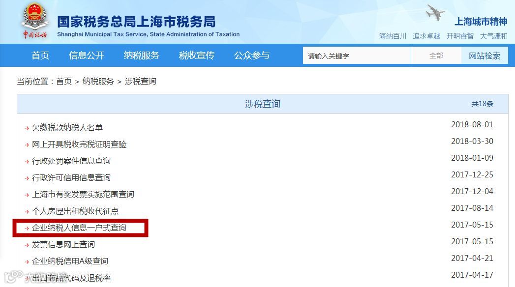 关注“上海税务”微信公众号,在“涉税查询”模块下的“一户式查询”中,输入纳税人名称、税号或统一码,即可查询。