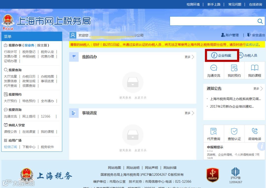 3.点击“企业档案”,即可查看到本企业的“纳税信用等级”以及相应的评价年度。