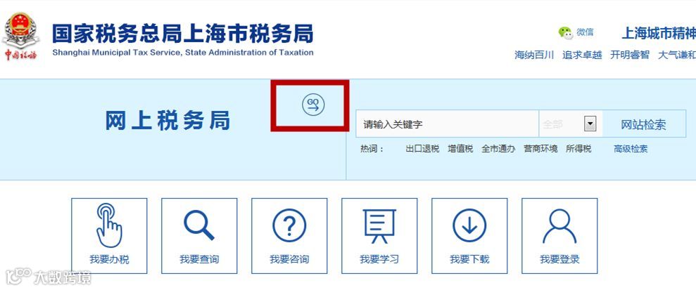 1.打开“国家税务总局上海市税务局”网站(www.tax.sh.gov.cn),点击首页中的“网上税务局”。