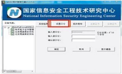 税务数字证书密码必须修改,首次使用开票软件,需到“NISEC用户管理工具”中设置新口令(一般建议您设置为12345678),如下图: