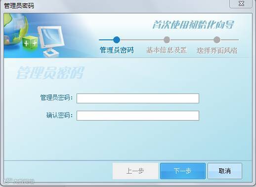首次进入开票软件会提示设置管理员密码,建议您不要设置,默认为空,直接点击“下一步”,如果设置密码需大于等于8位,且必须包含一个字母。