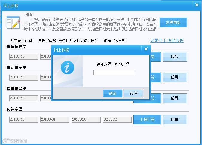 首次进行网上抄报会提示:请输入网上抄报密码,网上抄报密码一般为8个8。如下图: