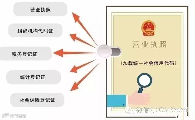 “五证合一、一照一码”,即营业执照的注册号、组织机构代码证号、税务登记证号、统计证号及社保登记证号统一为一个登记码,标注在营业执照上。