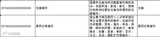 看下面的分类编码就知道,餐饮和住宿服务就2个编码,餐饮服务和住宿服务就是最终编码!