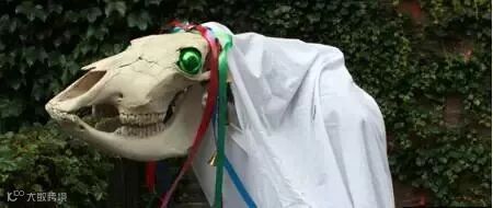 扮死马唱圣歌是冬至时威尔士的古老习俗,人们围着一个戴上死马头盖骨扮成死马的人,然后一行人挨家挨户的唱圣歌,希望得到一些饮食作为馈赠,祈求为大家带来好运。这可不是什么海外奇谈,而是有所记载的典故,来源于广为传唱的圣歌——我们唱起圣诞祝酒歌。