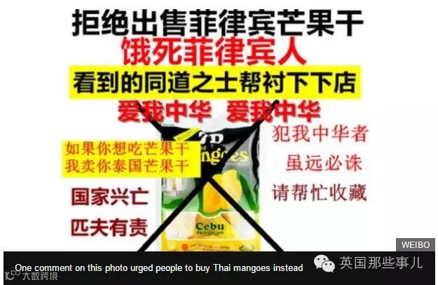 【中国南海:中国社交媒体强烈要求抵制菲律宾芒果】