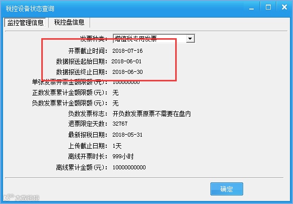 打开报税处理-状态查询-监控管理信息,确认开票截止日期是否更新至7月16日。