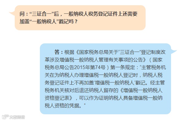 【12366】三证合一后,税务登记证件上还盖“一般纳税人”戳记吗?