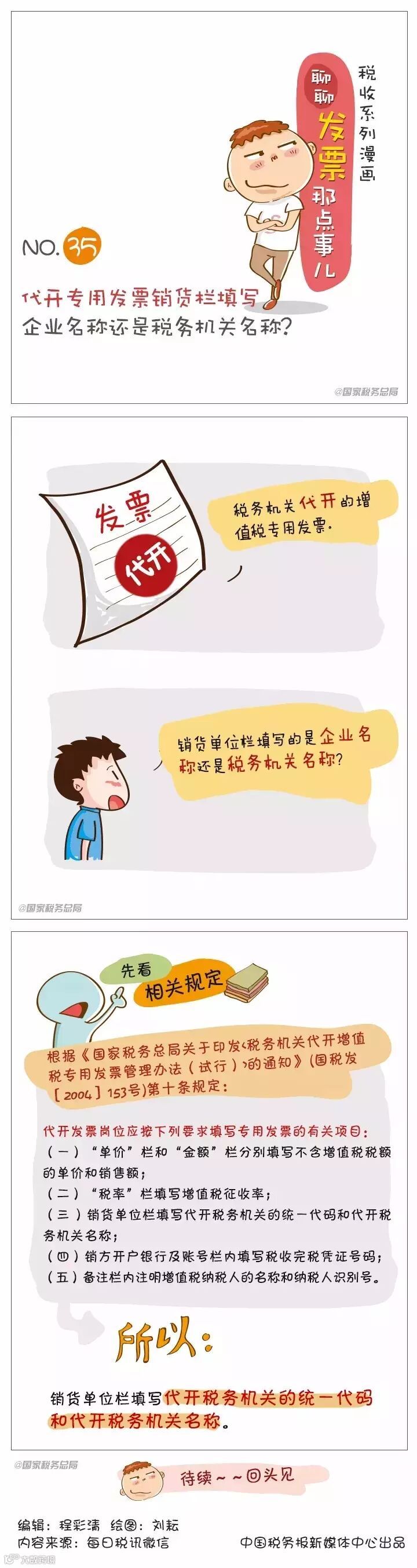 【漫画税收】代开专用发票销货栏应填写谁的名称?