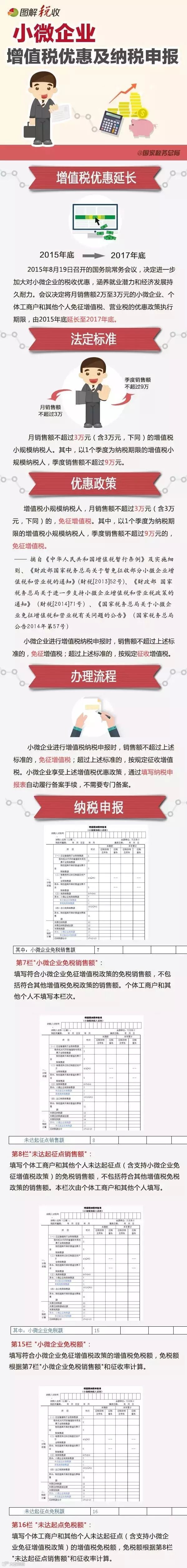 2015年8月19日召开的国务院常务会议,决定将月销售额2万至3万元的小微企业、个体工商户和其他个人免征增值税、营业税的优惠政策执行期限,由2015年底延长至2017年底。以下这张图,将告诉小微企业们实际操作中该如何享受增值税优惠。