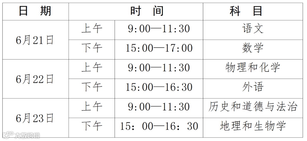 中考(全省统一命题科目)时间是如何安排的?