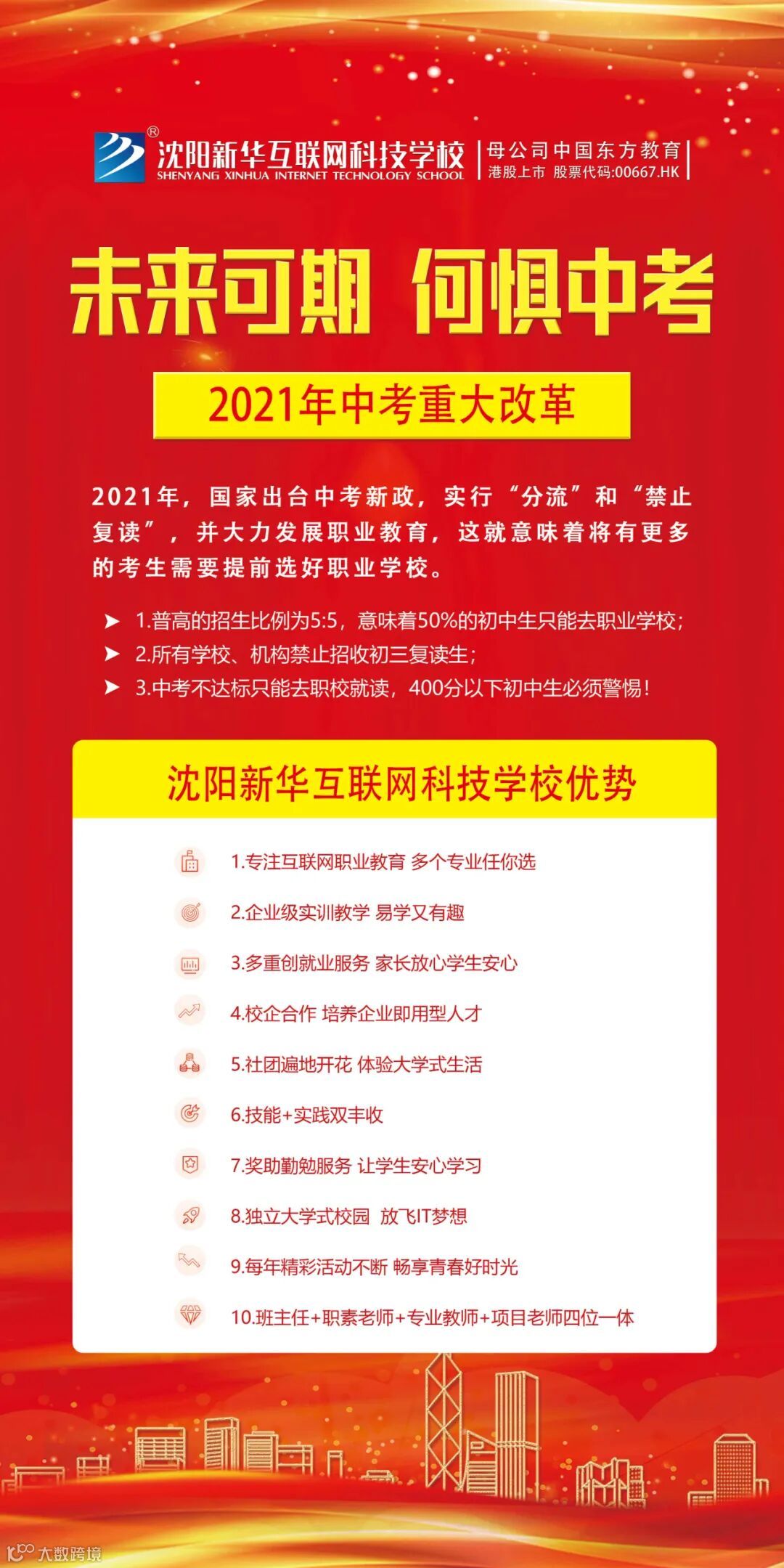 中高考并不能决定一个人的未来。若成绩优异,便是锦上添花的好事,为未来减少点障碍;若成绩不理想,也没必要暗自忧伤。放下包袱,砥砺前行,未来就在不远处。来沈阳新华学互联网技术,照样走向幸福人生!