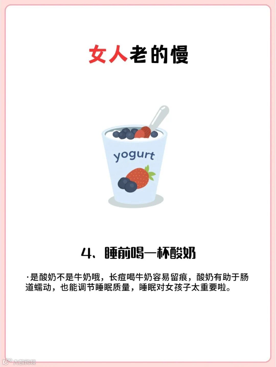 睡前半小时喝一杯无糖酸奶,让你的肠道和肌肤都得到滋养,睡出健康美丽!