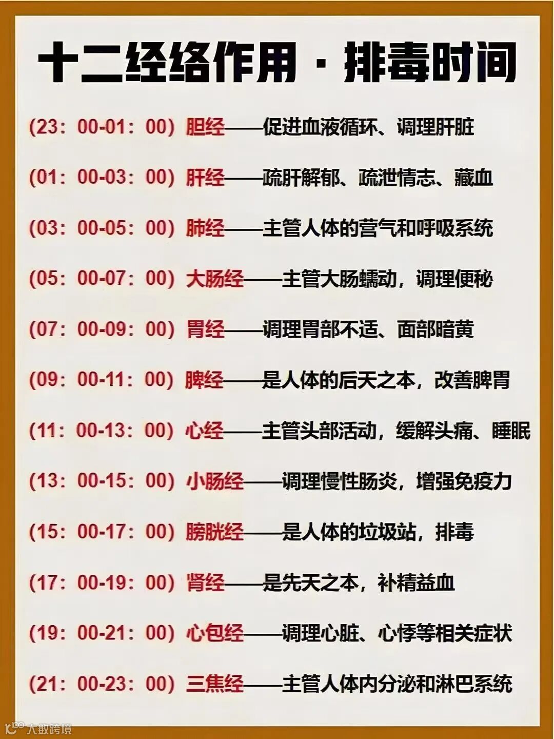 养生重点: 养肝护肝,避免熬夜,可按摩太冲、行间等穴位。