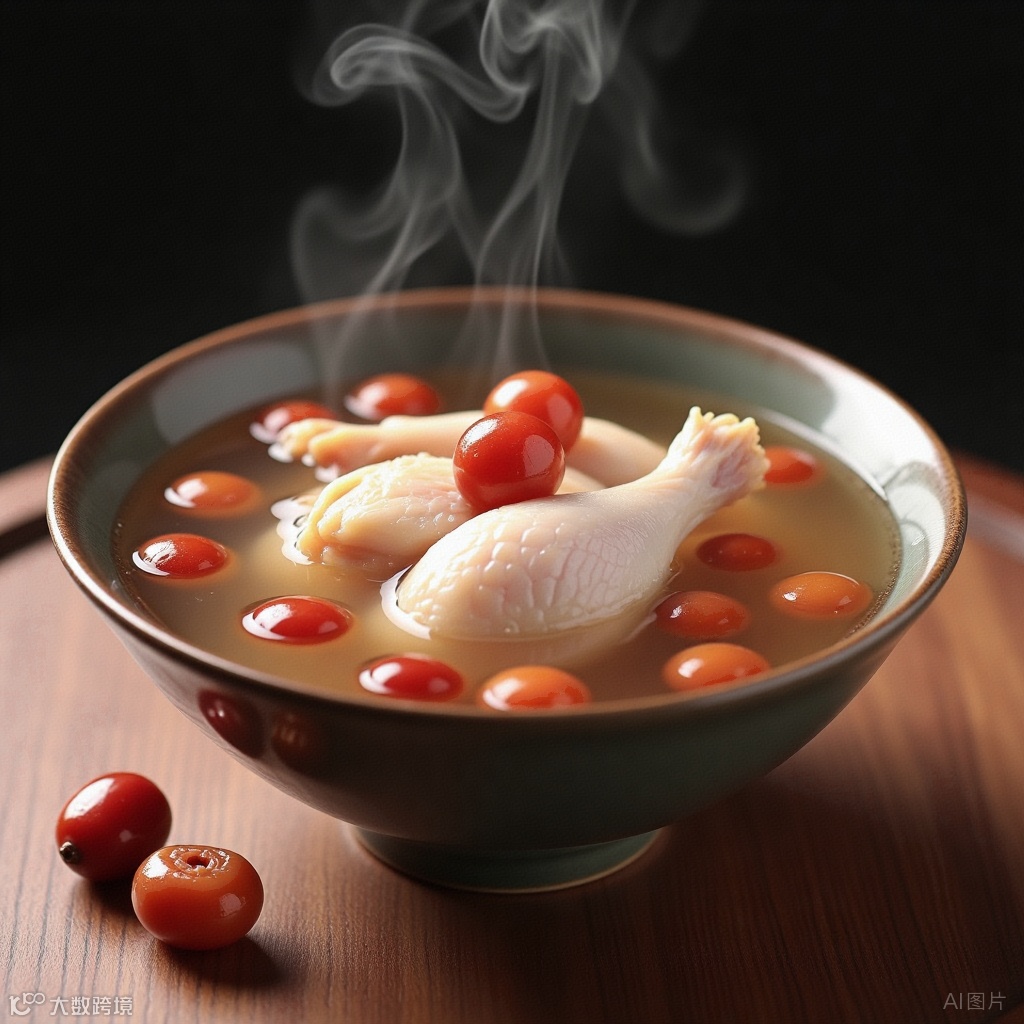 6. 枸杞红枣鸡汤:
