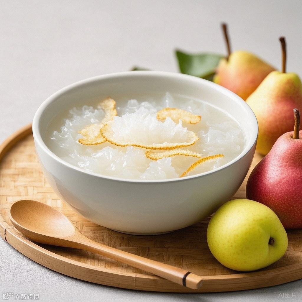 功效: 滋阴润肺,生津止渴。梨子清甜多汁,银耳富含胶原蛋白,冰糖润肺止咳,三者结合,简直是春季补水神器!