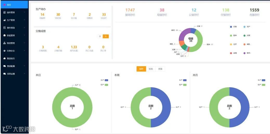 数据汇总:猪只存栏数据、分娩数据、配种数据、妊检数据、死淘数据