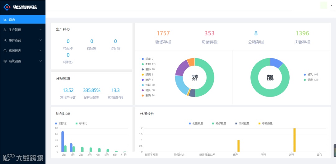 繁殖管理系统:采精,配种,妊娠,分娩,断奶等。