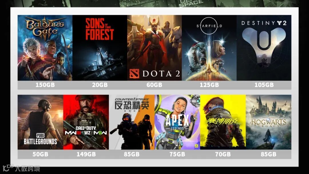 纵览2023年Steam畅销游戏铂金榜单,仅有一款游戏容量需求为20GB,其余均在50GB以上,有4款游戏的容量需求达到了100GB以上。更重要的是,《博德之门3》、《森林之子》、《星空》、《赛博朋克2077》、《霍格沃兹之遗》等游戏均明确要求需要使用SSD作为存储介质。