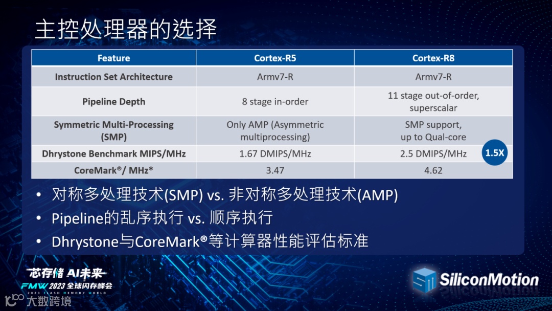 为达到这一性能,SM2508内建Cortex R8处理器,其支持的对称多处理技术(SMP),能够自主平衡多核处理器的工作负载,以优化混合负载场景下的性能。这意味着处理器可以智能地分配任务,确保每个核心都能充分发挥作用,从而提高整体性能。