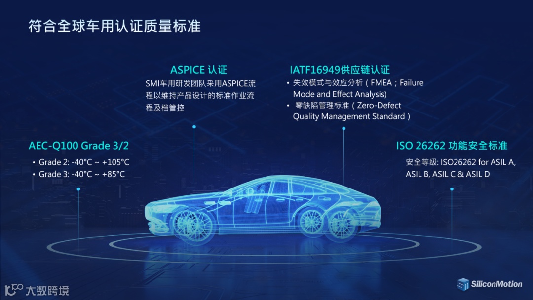 值得一提的是,慧荣科技全系列车载存储解决方案严格遵循AEC-Q100、ISO 26262、IATF16949和ASPICE等行业标准,为客户提供符合全球高标安全等级的车载应用。公司的产品经过严格的测试,包括端到端数据路径保护、SRAM ECC错误修正、宽温生产和高压SRAM测试,确保在极端环境下的稳定性和耐用性。
