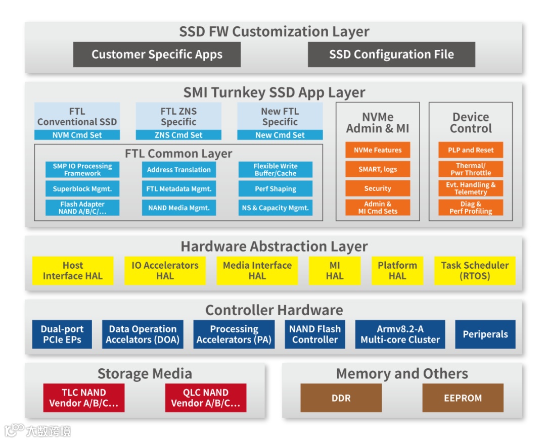 在传统的企业级SSD主控芯片解决方案中,拥有两种供应模式:主控芯片供应商提供Turnkey解决方案,与闪存供应商合作将完整的产品推向市场;另一种则是主控芯片供应商提供SDK,由客户自行开发完整的SSD产品。前者拥有较快的产品上市时间,但针对某些特殊应用场景难以针对性优化,而后者可以打造足够的差异化以应对客户需求,但需要客户在时间和金钱上进行大量投入,从而影响到SSD推出时间。
