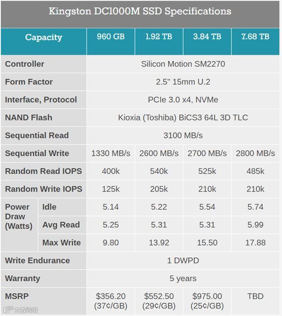 https://www.anandtech.com/show/15564/kingston-releases-dc1000m-u2-datacenter-ssd
