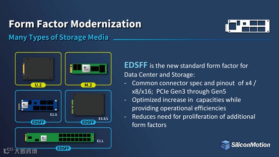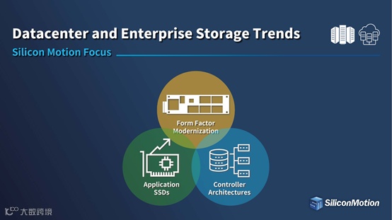 在快速发展的数据中心及企业级存储市场中,慧荣科技的关注点更多集中在“封装形态”、“面向应用的SSD”及“控制器的结构”这三大板块。