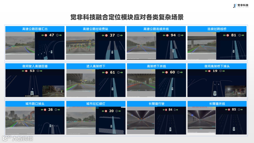“从2022年开始,觉非科技的融合定位产品就已经开始量产上车。”李东旻提到。觉非在自动驾驶车辆的定位上,融合了激光点云或者视觉感知信息、车身信号与高精度地图数据,通过适配层、算法支撑层与融合层,将多种车辆信息与环境信息进行实时数据融合计算,可应对各类道路复杂场景。